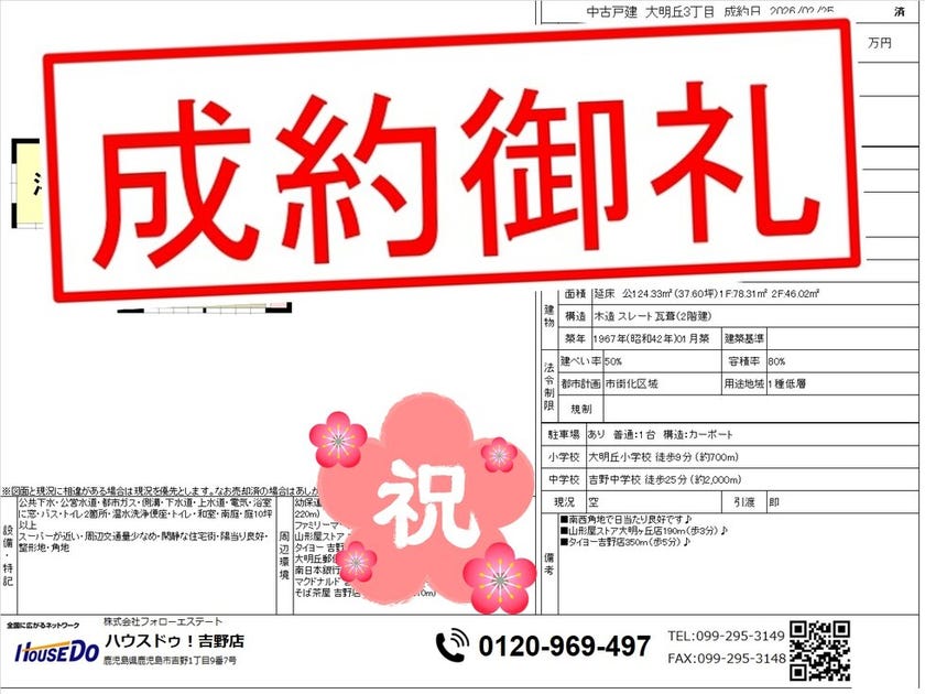 ≪2月 ご成約情報≫ 【吉野・川上・下田・大明丘専門店】 ハウスドゥ!吉野店 成約御礼‼