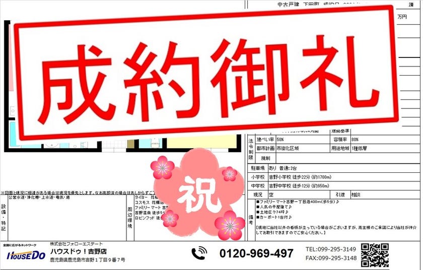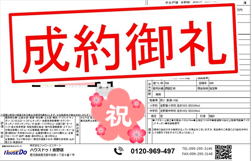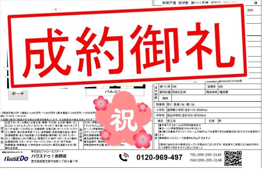 ◆ 西伊敷4丁目 新築戸建 ◆ 無事、ご成約致しました♪ 買主様、売主様、この度はご成約おめでとうございます♪