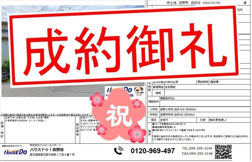 ≪7月 ご成約情報≫ 【吉野・川上・下田・大明丘専門店】 ハ...