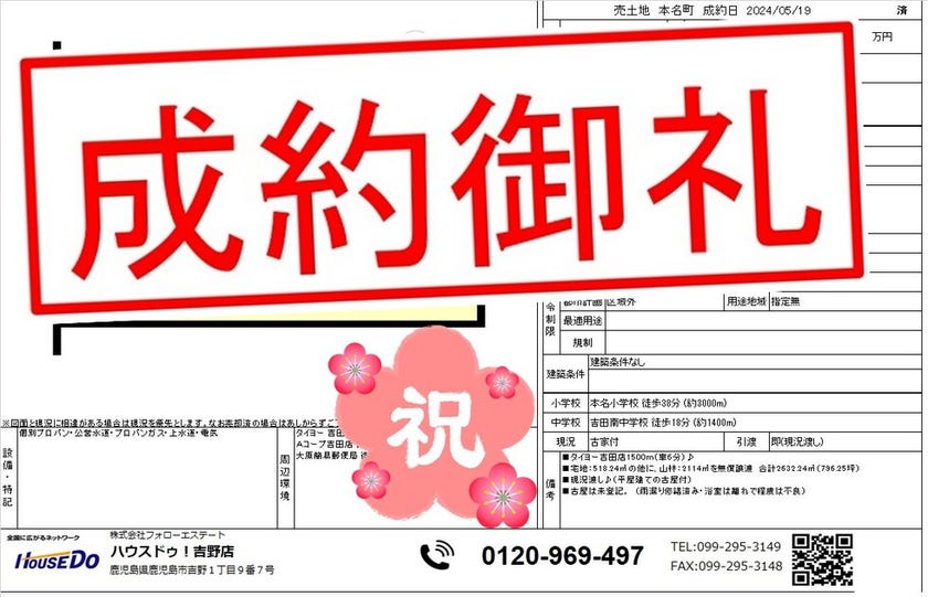 ◆ 本名町 売地 ◆ 無事、ご成約致しました♪ 買主様、売主様、この度はご成約おめでとうございます♪