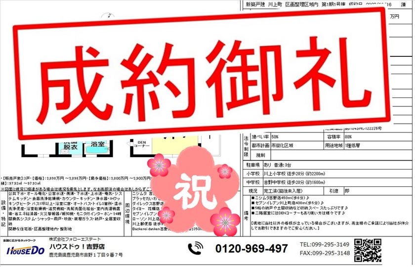 ◆ 姶良市永池町 新築戸建 ◆ 無事、ご成約致しました♪ 買主様、売主様、この度はご成約おめでとうございます♪