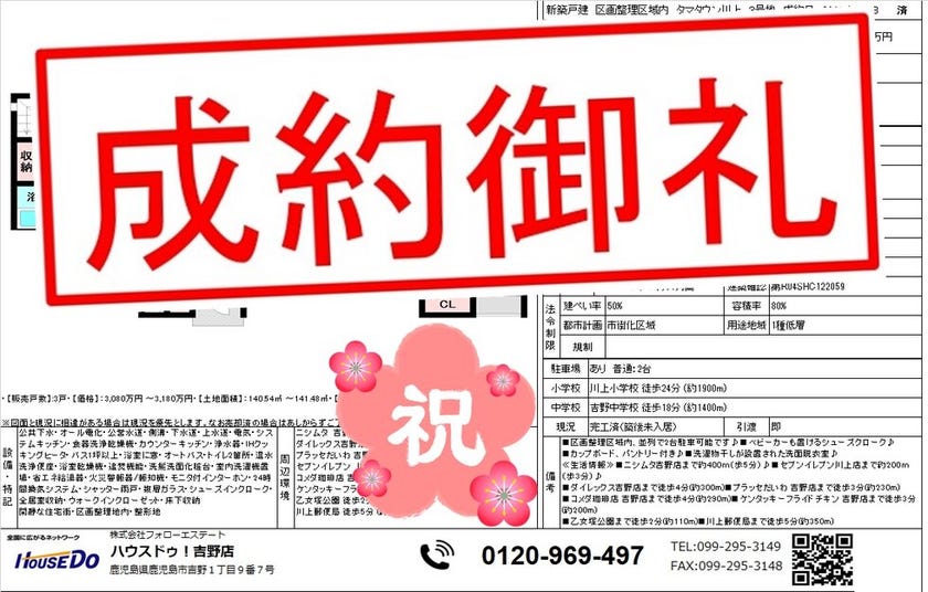 ◆ 吉野3丁目 新築戸建 ◆ 無事、ご成約致しました♪ 買主様、売主様、この度はご成約おめでとうございます♪