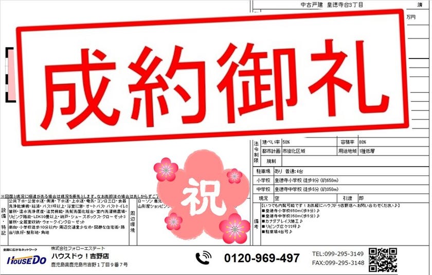 ◆ 皇徳寺台3丁目 中古戸建 ◆ 無事、ご成約致しました♪ 買主様、売主様、この度はご成約おめでとうございます♪