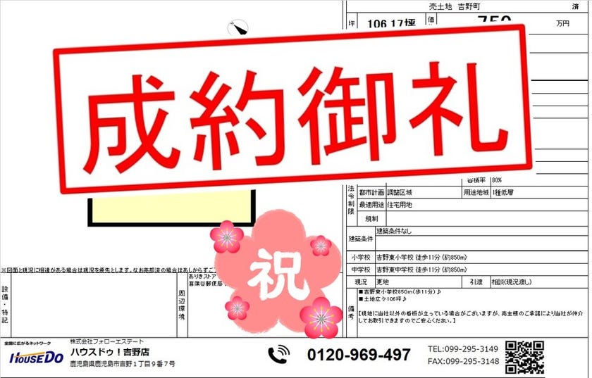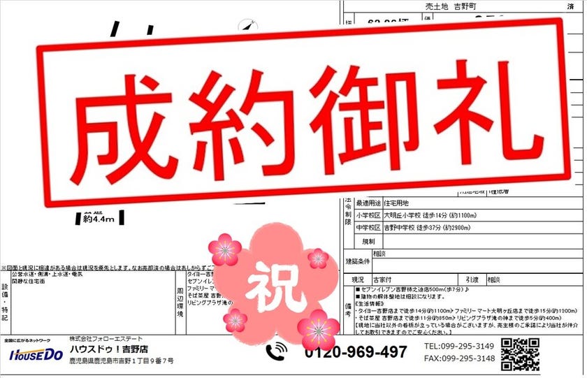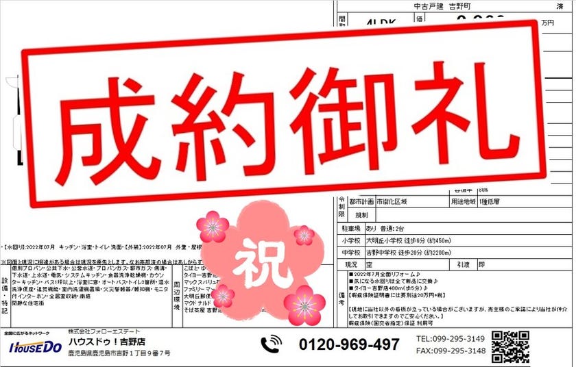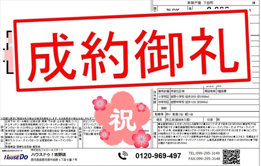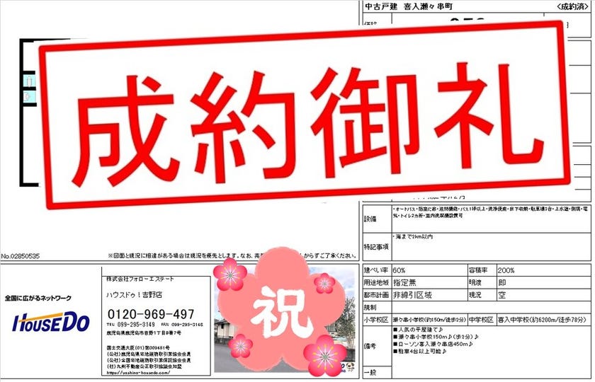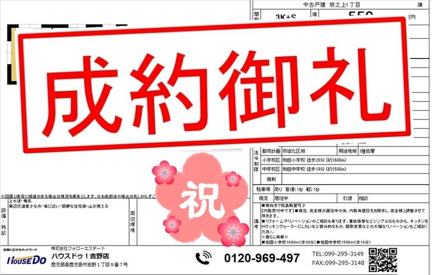 ◆ 喜入瀬々串町 中古戸建 ◆ 無事、ご成約致しました♪ 買主様、売主様、この度はご成約おめでとうございます♪