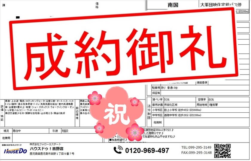 ◆ 下伊敷2丁目 中古戸建 ◆ 無事、ご成約致しました♪ 買主様、売主様、この度はご成約おめでとうございます♪