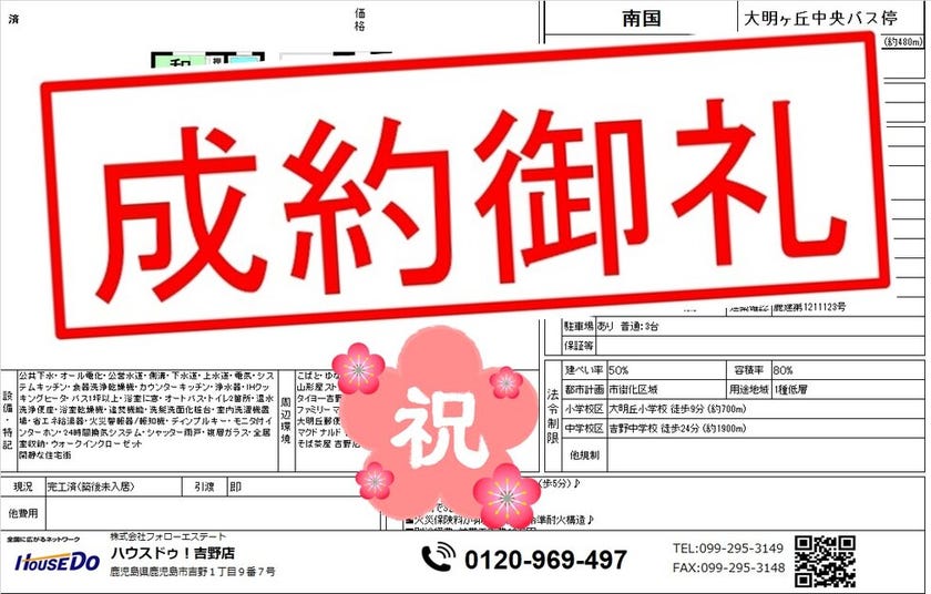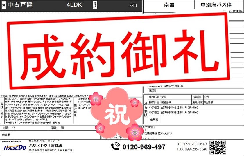 ◆ 西別府町 中古戸建 ◆ 無事、ご成約致しました♪ 買主様、売主様、この度はご成約おめでとうございます♪