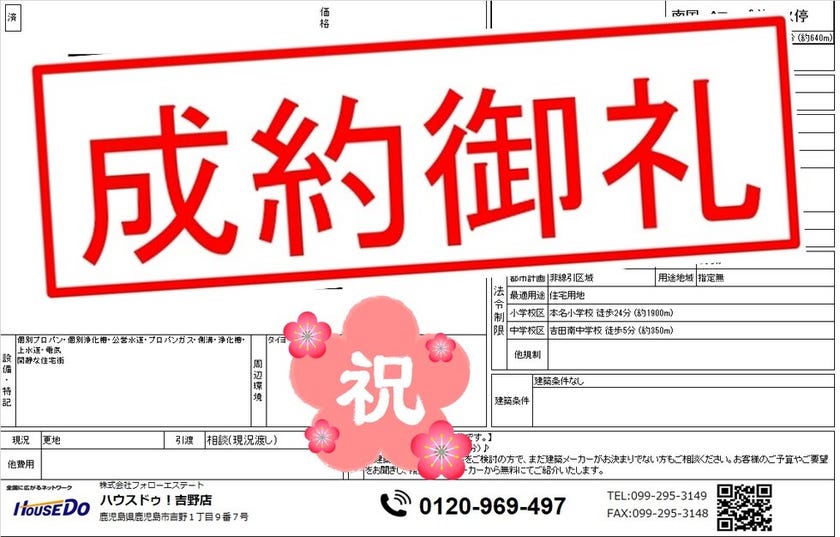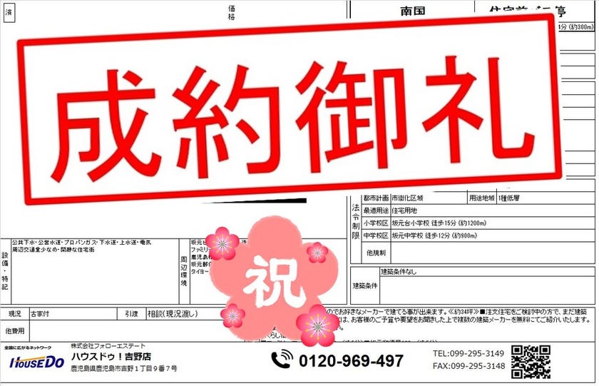 ◆ 坂元町 売地 ◆ 無事、ご成約致しました♪ 買主様、売主様、この度はご成約おめでとうございます♪