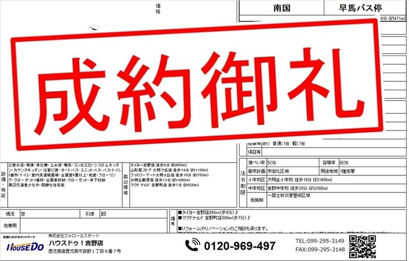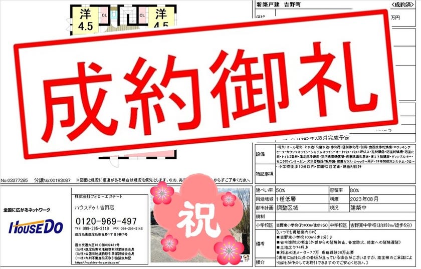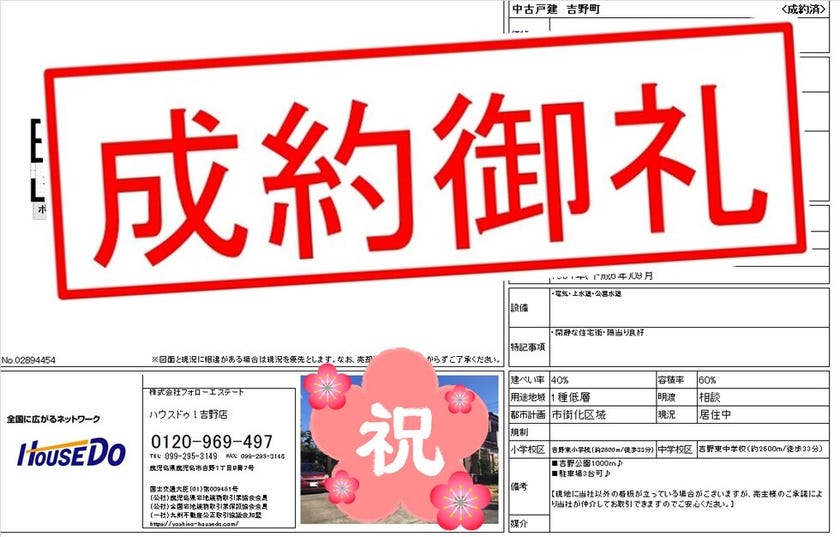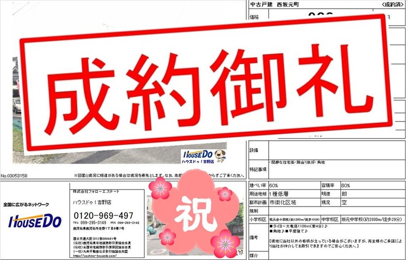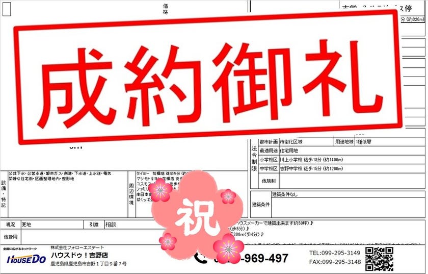◆ 吉野2丁目 売地 ◆ 無事、ご成約致しました♪ 買主様、売主様、この度はご成約おめでとうございます♪
