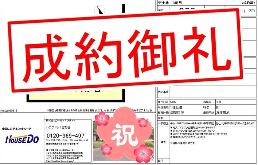 ◆ 山田町 売地 ◆ 無事、ご成約致しました♪ 買主様、売主様、この度はご成約おめでとうございます♪