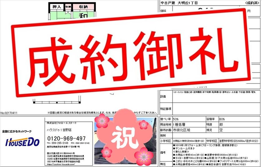 ◆ 大明丘1丁目 中古戸建 ◆ 無事、ご成約致しました♪ 買主様、売主様、この度はご成約おめでとうございます♪