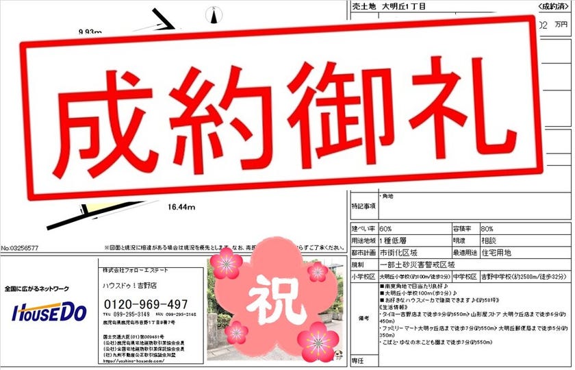 ◆ 大明丘1丁目 売地 ◆ 無事、ご成約致しました♪ 買主様、売主様、この度はご成約おめでとうございます♪