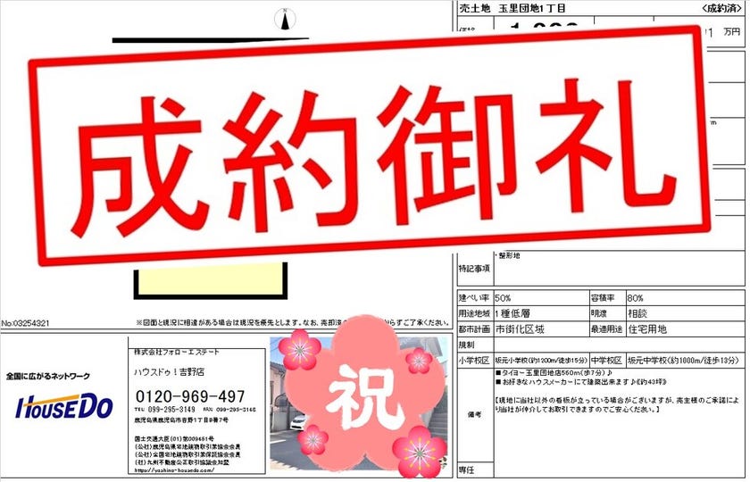 ◆ 玉里団地1丁目 売地 ◆ 無事、ご成約致しました♪ 買主様、売主様、この度はご成約おめでとうございます♪