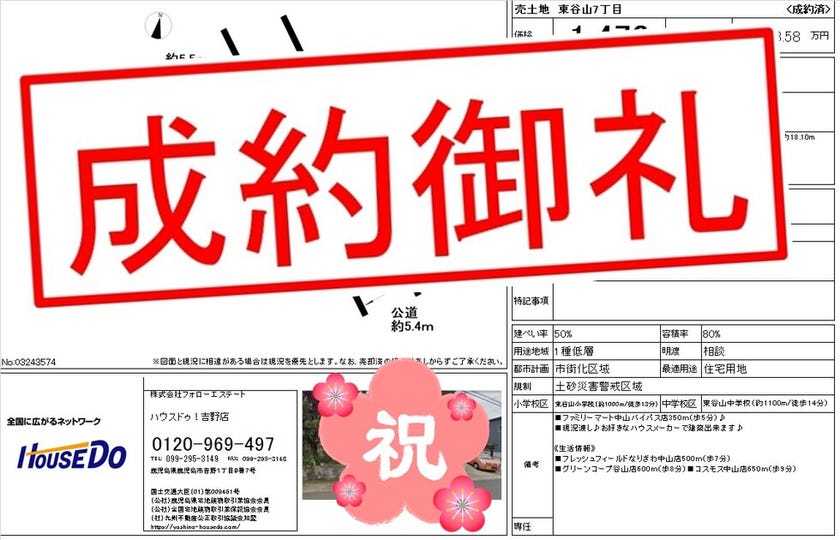 ◆ 東谷山7丁目 売地 ◆ 無事、ご成約致しました♪ 買主様、売主様、この度はご成約おめでとうございます♪