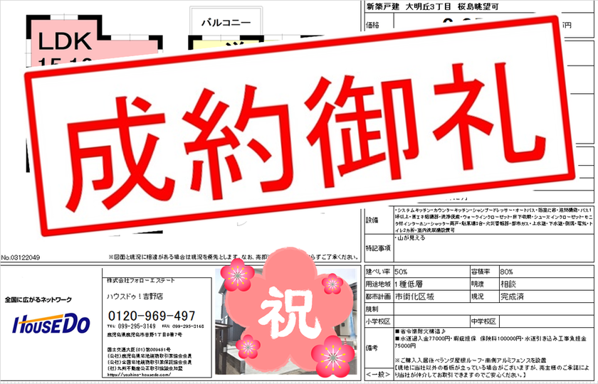 ◆ 大明丘三丁目 新築戸建 ◆ 無事、ご成約致しました♪ 買主様、売主様、この度はご成約おめでとうございます♪