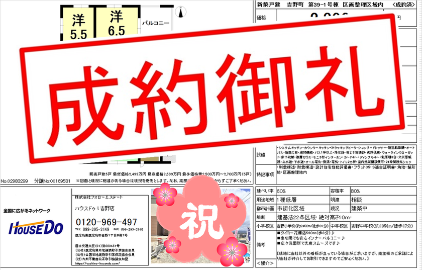 ◆ 吉野町 区画整理区域内 新築戸建 ◆ 無事、ご成約致しました♪ 買主様、売主様、この度はご成約おめでとうございます♪
