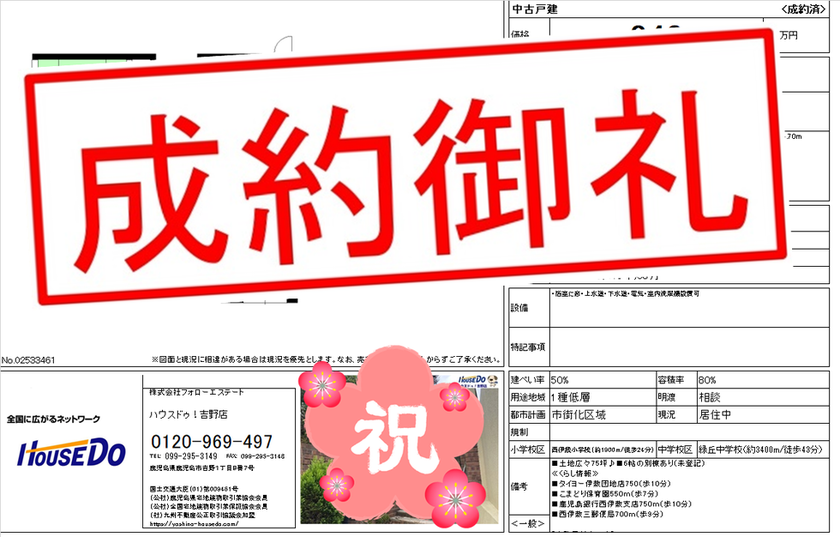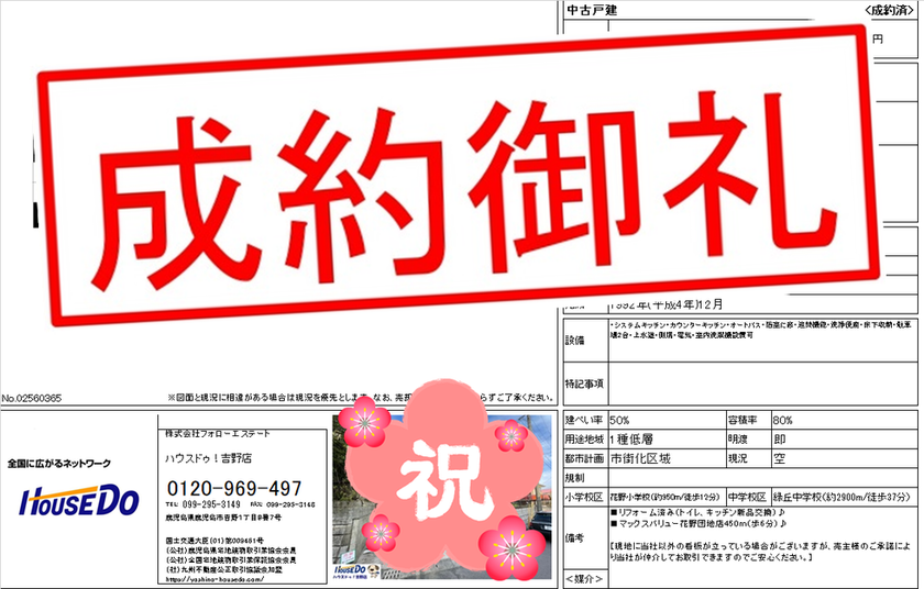 ◆ 西伊敷1丁目 中古戸建 ◆ 無事、ご成約致しました♪ 買主様、売主様、この度はご成約おめでとうございます♪