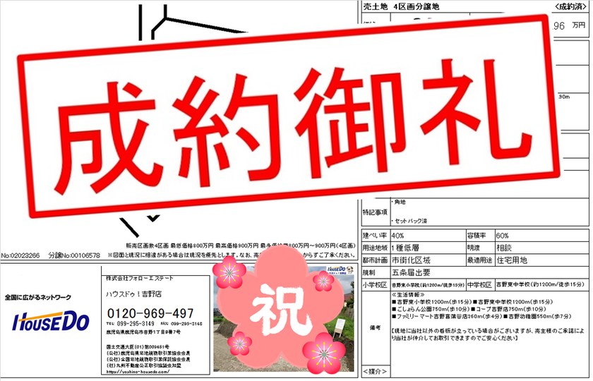 ◆ 吉野町 売地 ◆ 無事、ご成約致しました♪ 買主様、売主様、この度はご成約おめでとうございます♪