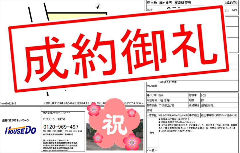 ◆ 緑ヶ丘町 売地 ◆ 無事、ご成約致しました♪ 買主様、売主様、この度はご成約おめでとうございます♪