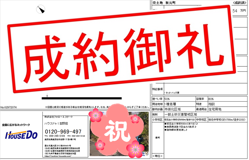 ◆ 坂元町 売地 ◆ 無事、ご成約致しました♪ 買主様、売主様、この度はご成約おめでとうございます♪