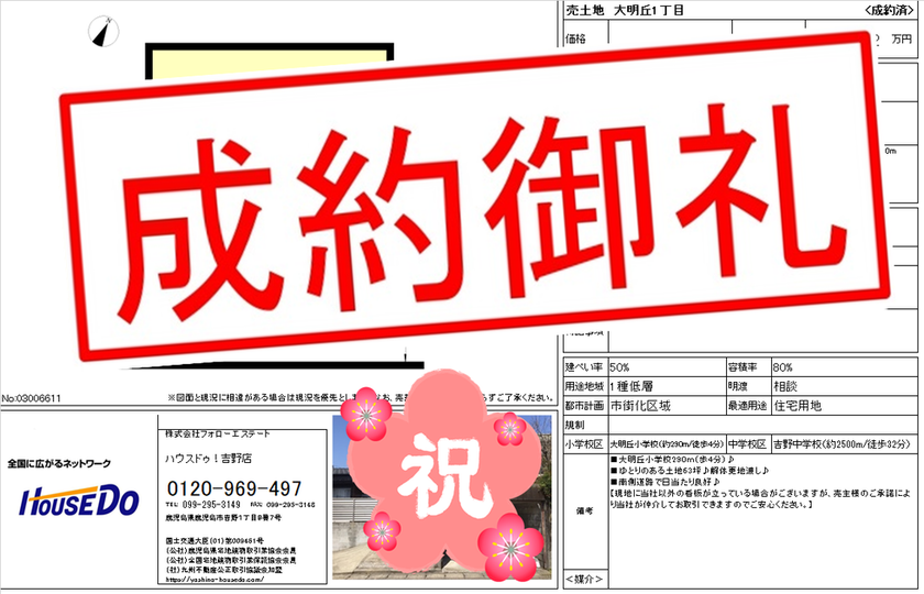 ◆ 大明丘1丁目 売地 ◆ 無事、ご成約致しました♪ 買主様、売主様、この度はご成約おめでとうございます♪
