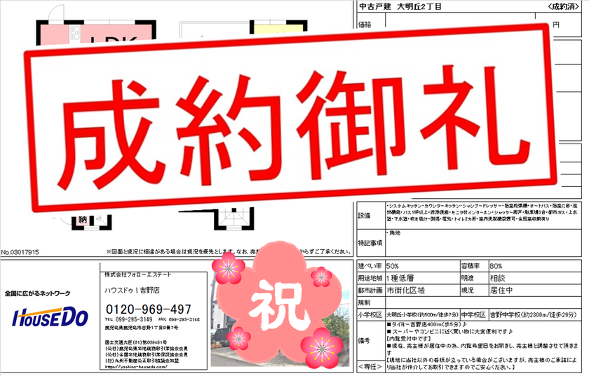 ◆ 大明丘2丁目 中古戸建 ◆ 無事、ご成約致しました♪ 買主様、売主様、この度はご成約おめでとうございます♪