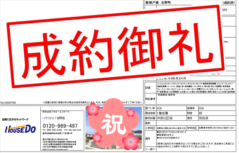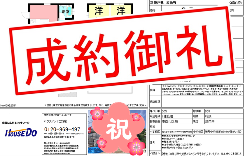 ◆ 坂元町 新築戸建 ◆ 無事、ご成約致しました♪ 買主様、売主様、この度はご成約おめでとうございます♪