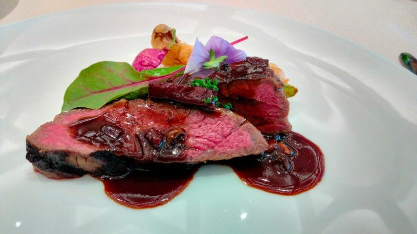 【南国黒牛ロースのグリル 赤ワインソース ジンガラ風】