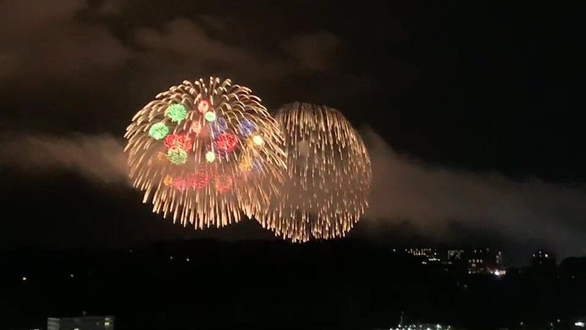 20時ジャストの恒例の二尺玉同時打上げ