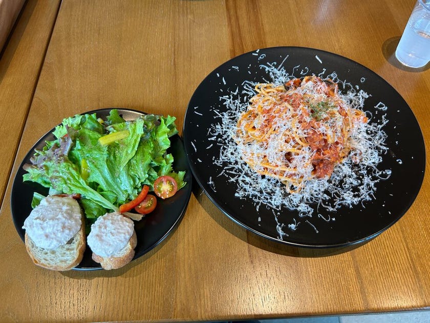 トマトパスタサラダ、ババロアのデザート、そしてコーヒーを注文しました。