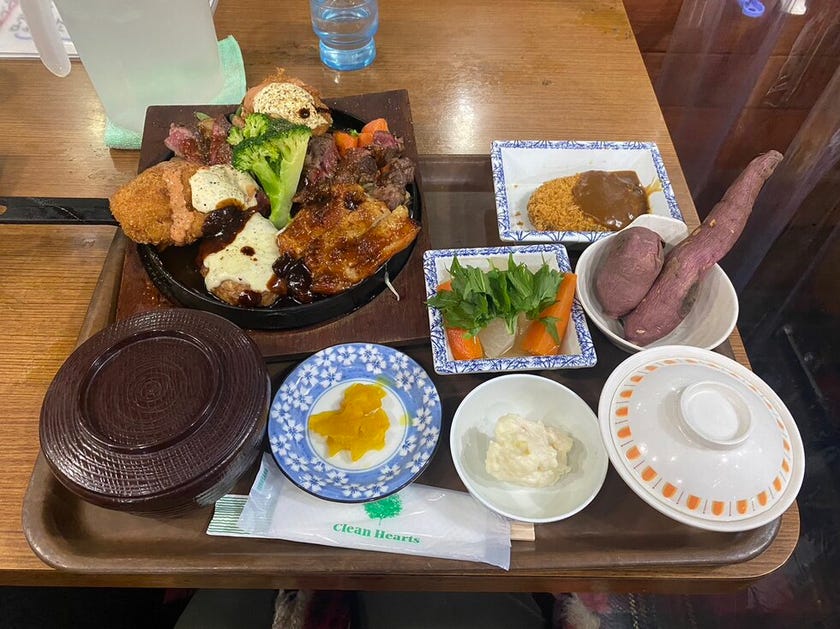 「吉野・川上・下田・大明丘専門店 ハウスドゥ吉野店」の田渕です!! 年末の話になりますが、主人の希望で大盛りのお店に行ってきました! 左上のチキンステーキとローストビー...